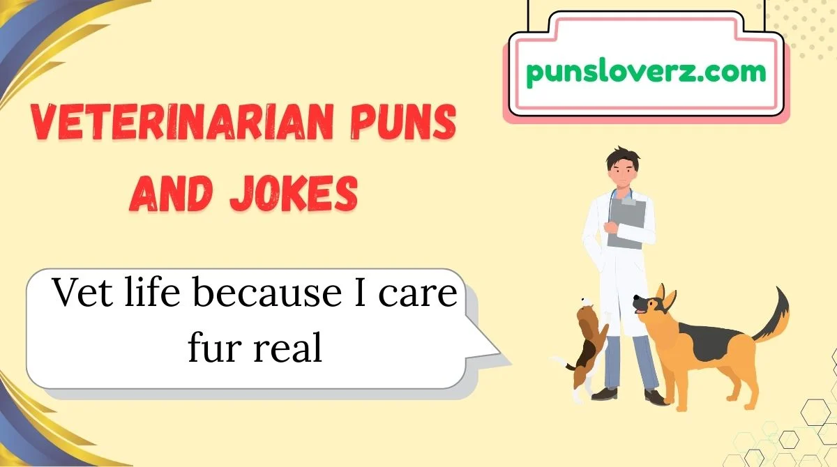 Veterinarian puns are playful jokes or wordplay related to vets animals and pet care. They are light and fun.